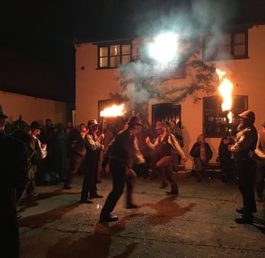 “What passes before me in the narrow lane is an extraordinary vision, one that wouldn’t be out of place in a hand-printed penny dreadful. A silent, unsmiling procession bearing flaming torches, dim lanterns and instruments, the sound of their hobnailed boots punctuated by the irregular thump of a drum and seven black-robed women their heads wreathed in huge garlands of ivy….” Melissa Harrison - The Times